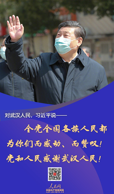 ● 武汉不愧为英雄的城市,武汉人民不愧为英雄的人民,必将通过打赢这次抗击新冠肺炎疫情斗争再次被载入史册!全党全国各族人民都为你们而感动、而赞叹!党和人民感谢武汉人民!