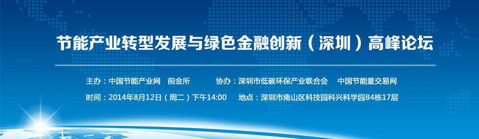 在此形势下,由中国节能产业网、前金所联合主办,由深圳市低碳环保产业联合会、中国节能量交易网协办的“节能产业转型发展与绿色金融创新(深圳)高峰论坛”将定于2014年8月12日下午在深圳举办。
