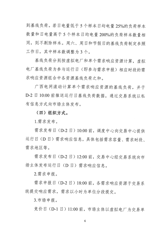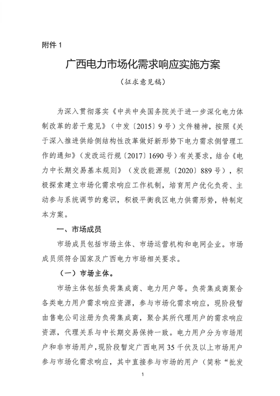 北极星储能网获悉,11月26日,广西工信厅发布《广西电力市场化需求响应实施方案(征求意见稿)》,文件提出,需求响应资源为市场主体可调节负荷,包含自备电源、安装于用户侧的储能装置、具备调节能力的工业生产负荷等。需求响应资源聚合为,以虚拟电厂为单元参与需求响应,参与需求响应报价上限不超过2.5元/kWh。
