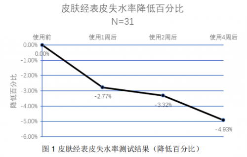 测试一:皮肤锁水及保湿能力提升—28天肌肤水分提升35.7%