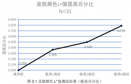通过以上测试验证了A.O.史密斯美容软水良好的保湿锁水效果,以及皮肤屏障的修复能力。作为美容产品,通过以下测试数据可以看出在使用A.O.史密斯美容软水4周后,面部皮肤亮白程度及面部皮肤弹性(眼角)也都有明显的改善。