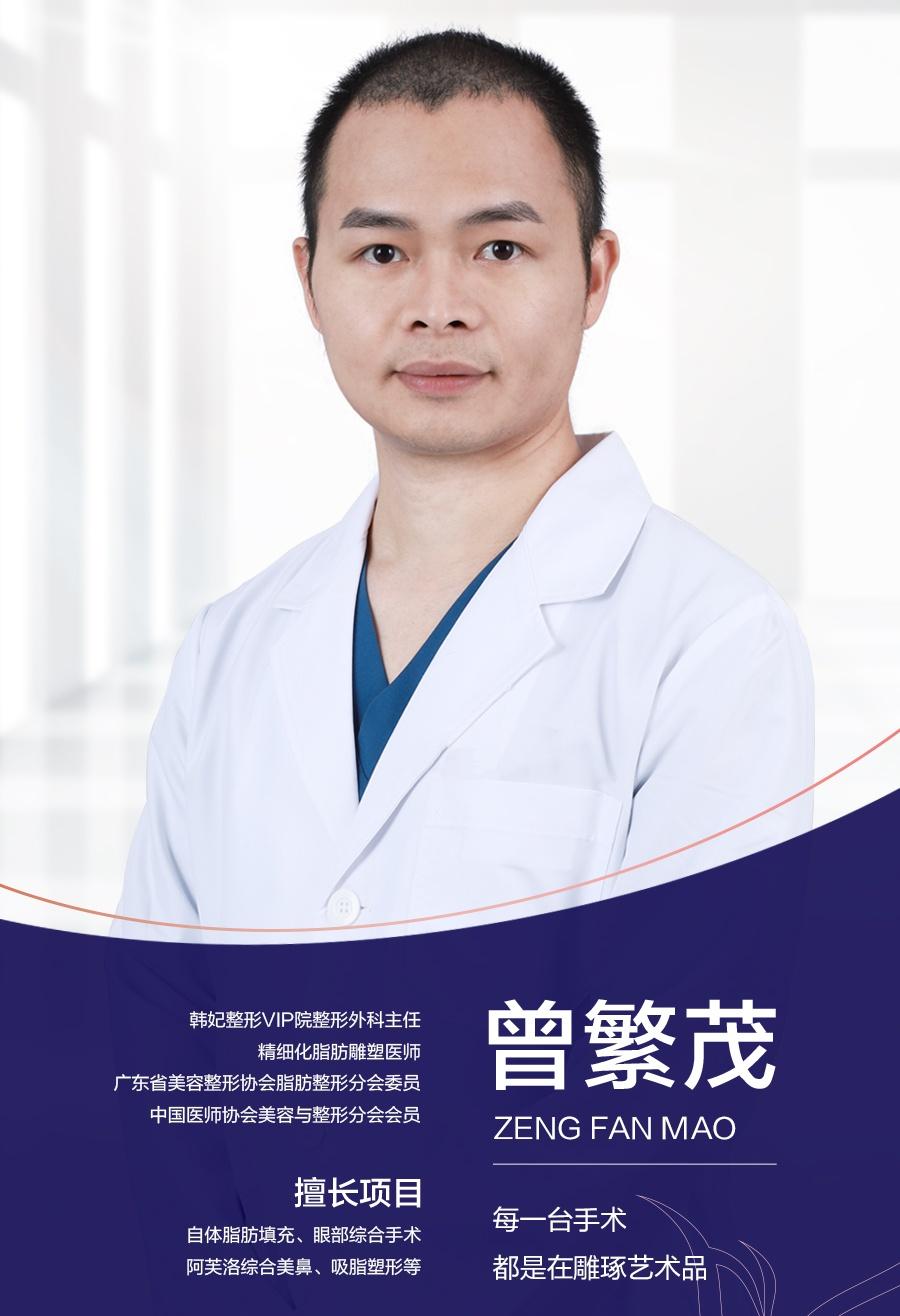 广东韩妃曾繁茂怎么样?曾繁茂,广东韩妃医疗美容医院整形外科主任,毕业于南方医科大学临床医学,师从国内著名整形教授李琳教授,曾赴日韩知名整形机构深造学习。从事整形美容临床工作近20年,多次与整形泰斗郑东学、曹仁昌同台竞技,对话先进医美技艺。