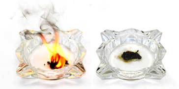 我们通过对市面上的普通无纺布和四季堂所使用的纪州备长炭膜布进行了一个对比燃烧实验,通过燃烧之后的现象观察可发现:四季堂所使用的备长炭膜布完全燃烧如左图,无任何残留物,燃烧时像烧炭一样,火花不会一下子完全熄灭。而普通无纺布在燃烧时如右图,会冒出浓浓的黑烟,气味难闻,燃烧后残留一些化学纤维和粘合剂。