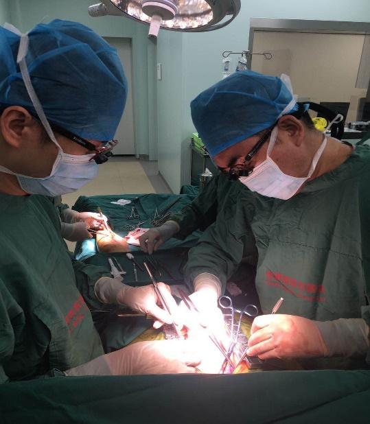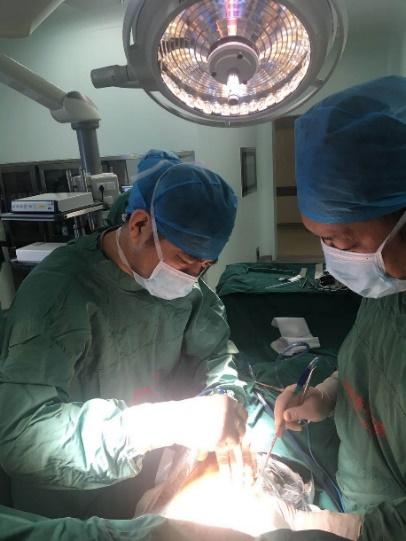 7月2日一大早,朱大爷被推进了手术室。麻醉科、手术室为这台心肺联合手术做了非常完善的准备工作。首先心脏大血管外科崔光浩主任为患者实施心脏不停跳搭桥手术,顺利为其搭建两根桥血管,成功为心肌恢复供血,为手术成功迈出了坚实的一步。