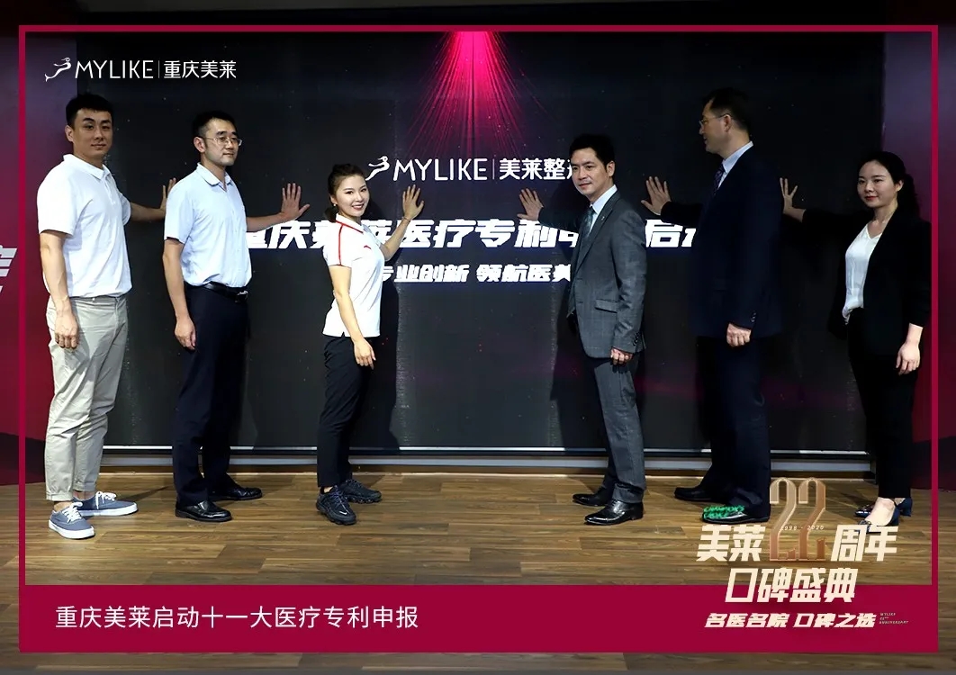 美莱发展22年一直都是行业的佼佼者,深知专业才能立本,创新才能发展。22周年之际,重庆美莱医护团队将多年钻研的成果一一呈现,在口碑盛典,奥运体操冠军和重庆美莱院长、同恒源嘉宾一起,隆重启动了专利申报。