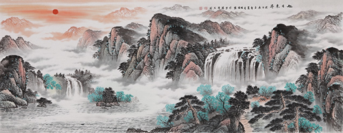 家居挂画推荐:旭日东升迎百福 李国胜力作山水画《旭日东升》【作品来源:易从网】
