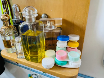 梳妆台上满满的隐形眼镜盒子,估计好多戴隐形眼镜的小伙伴都跟小艾一样吧。其实这只是冰山一角,各式各样的美瞳小艾有几十副,这上面的只是比较常用的一些而已,每年花在美瞳上面的钱一定是四位数的。