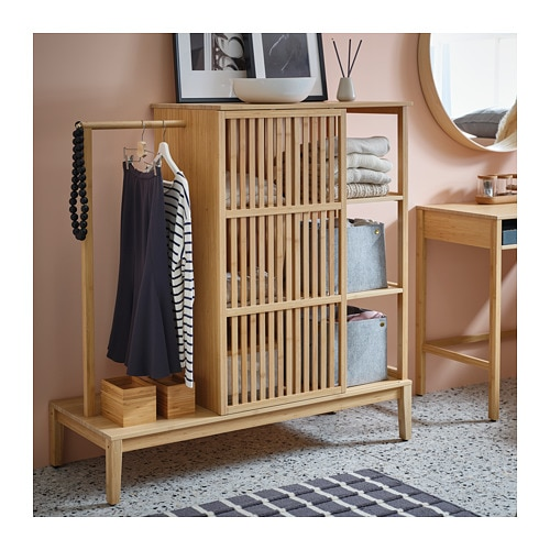 我试躺过宜家的海沃格袋装弹簧床垫,支撑和回弹都很优秀,可以释放一整天工作的压力,最让我惊喜的是床头的竹子挂衣架,是宜家新出的NORDKISA诺德希萨开放式衣柜。穿过但不需要洗的衣服终于有地方挂啦!而且竹子的材质可以调和房间主色调粉色的甜腻,让整体设计多了一点儿清凉感。