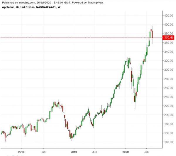 新冠疫情的爆发也给苹果公司带来了一些挑战,包括中国制造商供应链的中断和全球多地门店的关闭。不过苹果股价顶住了这些挑战,今年以来上涨了26%,较3月的低点上涨了60%。上周五,该股股价下跌0.25%,收于370.46美元,