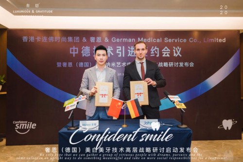 2020年7月30日奢恩品牌旗下纯德国进口项目美白纳米艺术齿雕核心创始人战略研讨发布会暨中德技术引进签约仪式在安徽省省会合肥市召开,由香港卡连佛时尚集团和奢恩品牌及德国技术公司&German Medical Service Co., Limited顺利达成深度的战略合作,这是奢恩品牌2020年最伟大的战略布局,开启以技术为中心的创业市场。