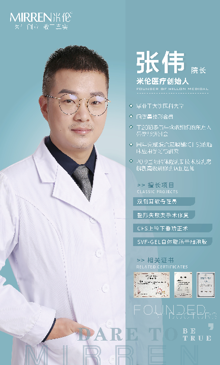 张伟院长,从事整形美容十余年,多年来一直致力于五官整形和面部年轻化上的创新。在眼部整形和鼻部整形上更为出色!作为中国鼻部整形领军人物,也是最早在广州推行双侧耳软骨隆鼻的医生之一,在近他十余年的鼻部整形生涯里,他用他那丰富的临床经验、扎实的专业基础、全面的手术技术,为数以万计的爱美同胞们成功塑造了众多理想鼻形。