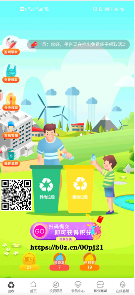 登录生态宝APP,就能了解生态宝推出的生态项目,通过垃圾分类,领取袋子,兑换商品的活动,促进打造社会环保,养成爱护环境的好习惯。