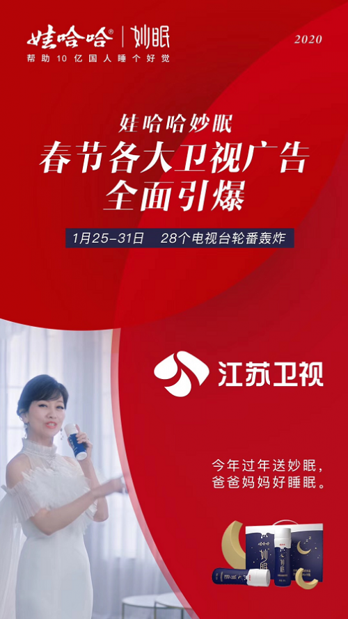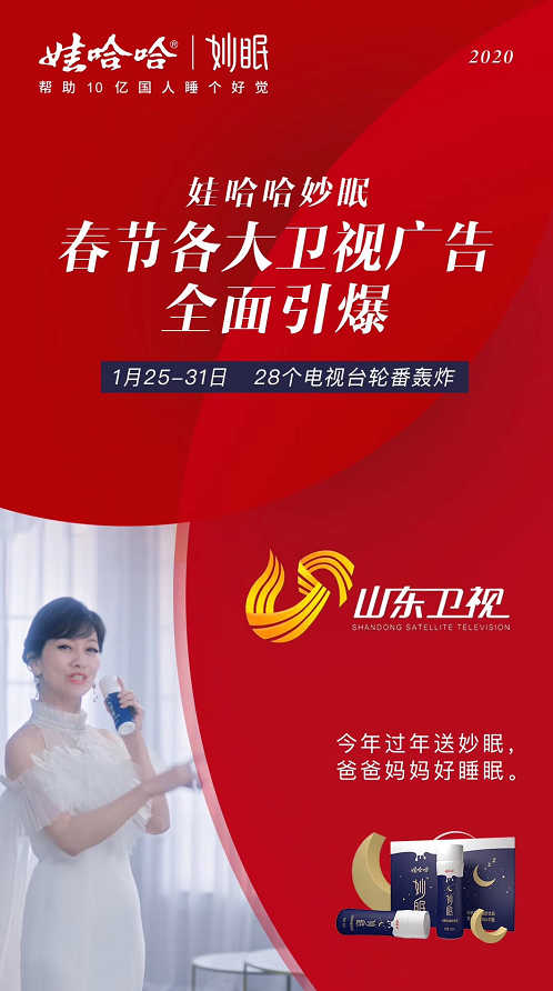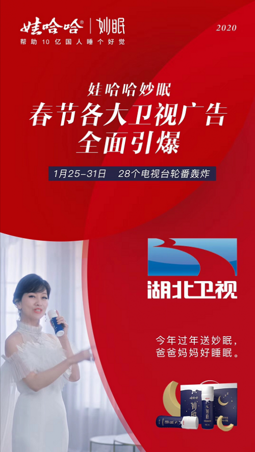 由国民不老女神赵雅芝拍摄的娃哈哈妙眠广告宣传片,在各大卫视广告全面引爆,30多家电视台轮番轰炸,CCTV-1、CCTV-2、山东卫视、吉林卫视等央媒、省媒纷纷聚焦娃哈哈妙眠:睡觉前、喝妙眠。
