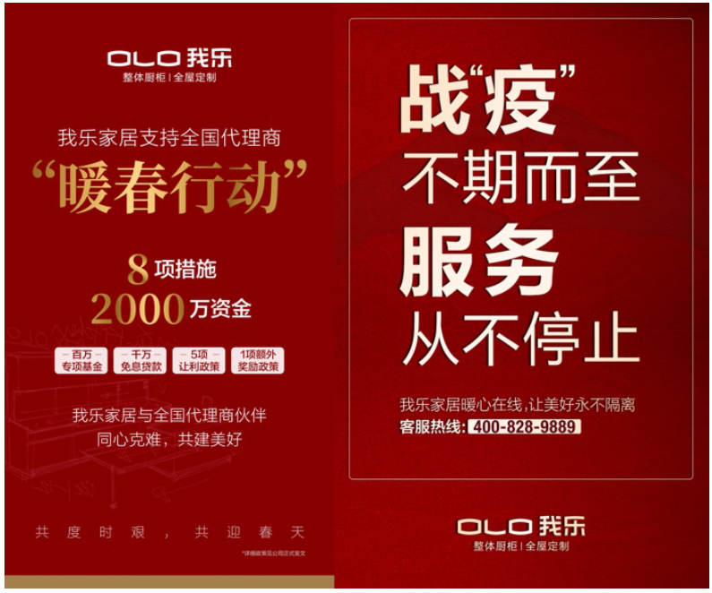 疫情之下,我乐家居先后推出八项“暖春行动”,涉及资金超过2000万元,针对湖北等疫情重灾区,我乐家居还设立“重灾区特别帮扶百万基金”,并对重灾区加盟商进行1对1的专项扶持,帮助疫情严重区的我乐家居加盟商重拾信心。