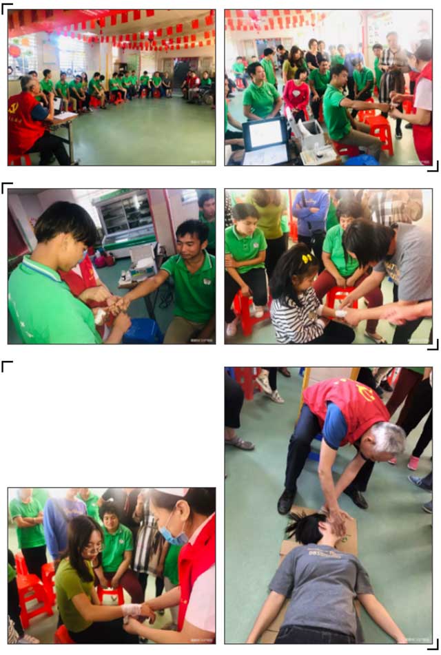 讲座中,常务院长黄诚意运用多媒体,采用通俗易懂的语言,从手外伤的包扎止血、断肢(指、趾)的保存方法等进行了详细的讲解,治疗室护士夏淑艳进行了外伤包扎的演示,并以互动的方式邀请康就中心职工们上前参与手外伤的包扎练习,指导大家掌握操作要领和技巧。