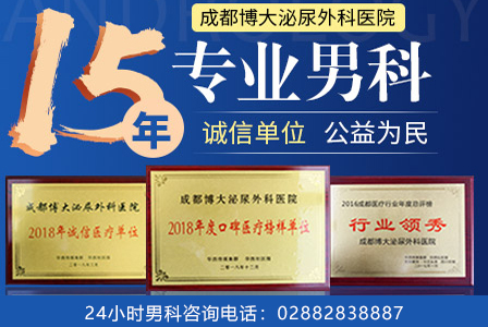 温馨提醒:对于男科病的存在千万不能掉以轻心,当自身出现男科病的相关症状时,应当及时到正规男科医院接受科学治疗,以免引发更加严重的并发症。若是对于男科病还存在问题,可以直接咨询成都博大泌尿外科医院。