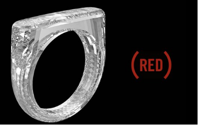 2018年苹果首席设计官乔尼·艾夫爵士和著名设计师马克·牛森爵士创造了(RED)整钻戒指,钻石由Diamond Foundry提供,钻石将被打磨出数千个切面,其中一些切面小到几百微米。