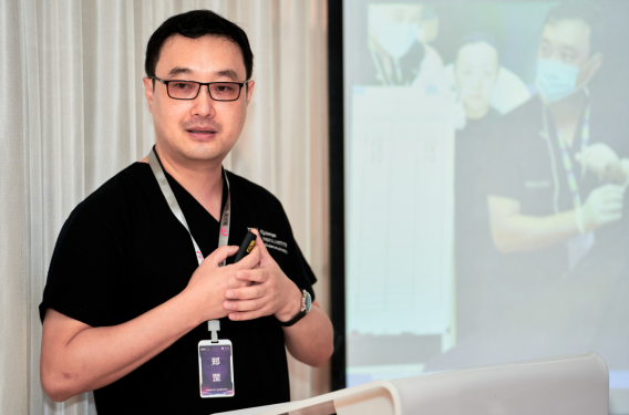 在培训现场,郑罡专家当众十分详细地讲解了当下医美注射技术,包括操作要点与注意事项,并为志愿者进行面部设计,亲自演示注射的规范操作流程和细节。在场者无不倾听,与专家互动。