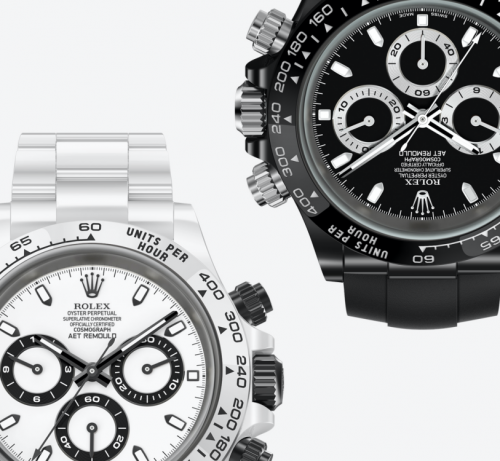 AET REMOULD迪通拿经典系列在2020年推出市场,保留劳力士的原始机芯和经典的三眼盘面设计,将整只迪通拿腕表全部塑造为高科技陶瓷材质,AET从陶瓷材质运用、色彩设计方面都进行改革性的变化,更时尚耀眼。利用高科技精密陶瓷打造的表壳与表带。AET REMOULD品牌自身具有的技术优势而打造的陶瓷表壳,沿用黑白相间的经典“熊猫”配色,计时盘采用强烈的对比色彩设计,白色盘面配黑色设计,或是黑色盘面配白色设计,也独有一番风味。
