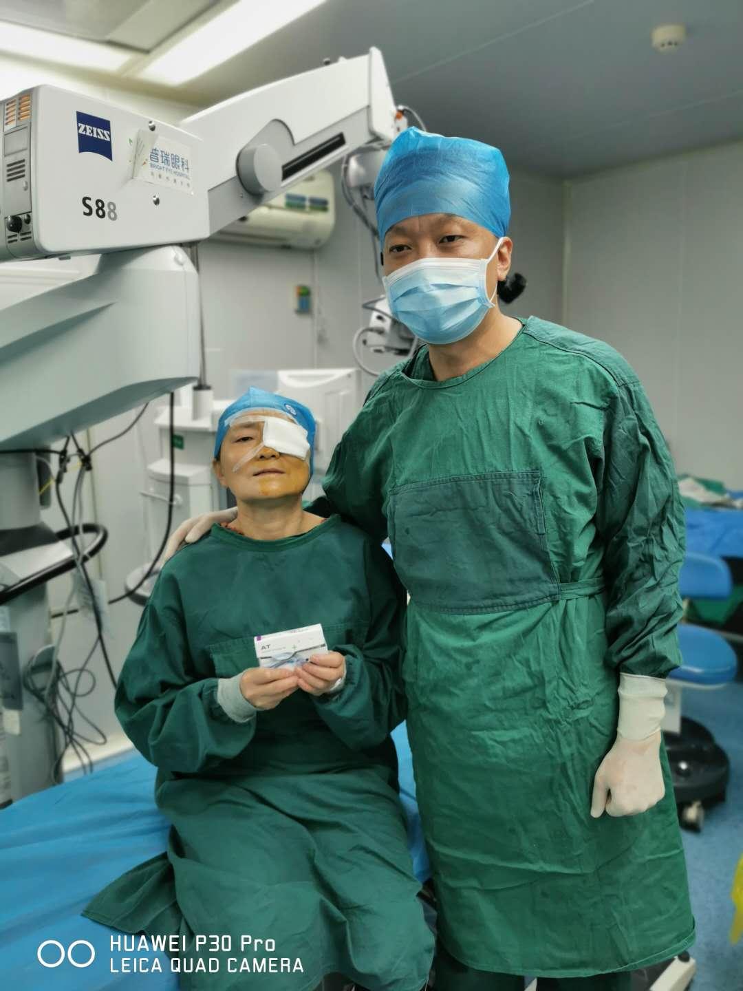 经过一系列详细的检查,在了解到许女士想要摘掉配戴多年的眼镜的强烈愿望后,燕涛主任为其选择了多焦点功能性人工晶体,可一次性解决白内障和高度近视两大问题,最大程度避免术后戴镜。这终于让许女士看到了希望。
