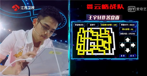 除了接送嘉宾,在这期节目中,2021款WEY VV6还有更重要的任务,那就是在《智行营救》环节中,与选手一起挑战通关!《智行营救》的规则是这样的:一个不规则迷宫盘面内,每次移动色块方向,色块会沿指定方向行进并将经过路径涂色,直到触碰边界才会停止移动。规定时间内,选手需要将迷宫全部涂色(解锁车辆)。最终解锁步数少者获胜,若步数一致则用时短者获胜。在规定限时内未完成作答者,直接失败。