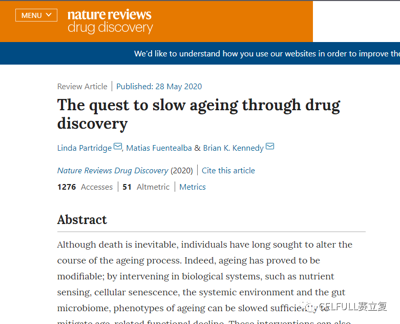 今年5月,Nature Reviews Drug Discovery上发表了一篇《如何开发抗衰老药》的综述,针对延缓衰老的药物发现领域进行了深度盘点,并且列出了最具希望的研究性抗衰老疗法。