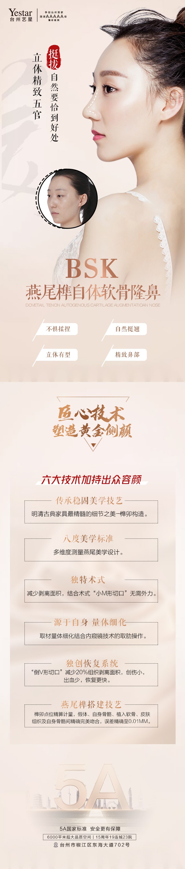 结合符合现代的审美艺星推出了美鼻新品——燕尾榫自体软骨隆鼻。