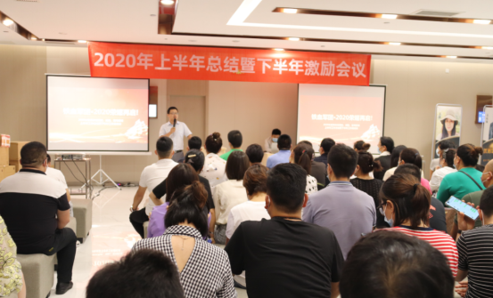 会议开始,程总代表集团董事长对普惠铁军全体致以诚挚问候,殷切期望,同时程总对上半年的业绩做了概要总结和分析,有可喜的成绩,也有对不足的反思,随后销售总监姚总的讲话,让铁军战士们更加有力信息,因为他给销售团队带来的是更加优厚的业绩奖励政策,讲话最后姚总为全体铁军鼓了士气:“大干100天,再干7000万”的连续吼声震彻回响,让现场气氛达到了高潮!