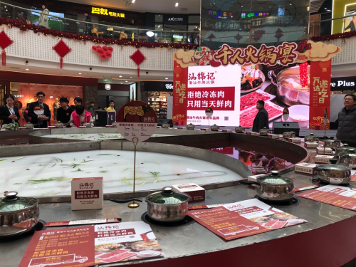 汕锦记上演“迎新春新年第一锅”互动活动,直径7米的中原第一大火锅,也创造了全国最大的潮汕牛肉火锅记录。