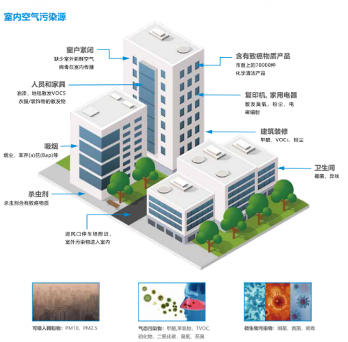 另据研究表明,室内空气污染程度要比室外严重5-10倍,特殊情况下甚至可高达100多倍,密闭建筑室内空气污染源主要有三大类:一是微生物污染物,如细菌、病毒、真菌;二是气态污染物,如甲醛、臭氧等;三是可吸入颗粒物,如PM2.5、PM10等;秋冬季室内更易滋生细菌、病毒,所以室内杀菌净化刻不容缓!