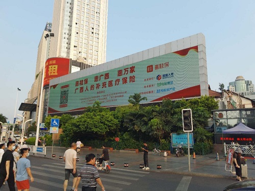 在广西各大城市的街头,和重点区、市的媒体上,“惠桂保”也以亮眼的形式,吸引市民们的注意。通过打通线上、线下,连接社区、企业、公众,融合网络、电视、广播、户外,形成了强大的宣传势能。
