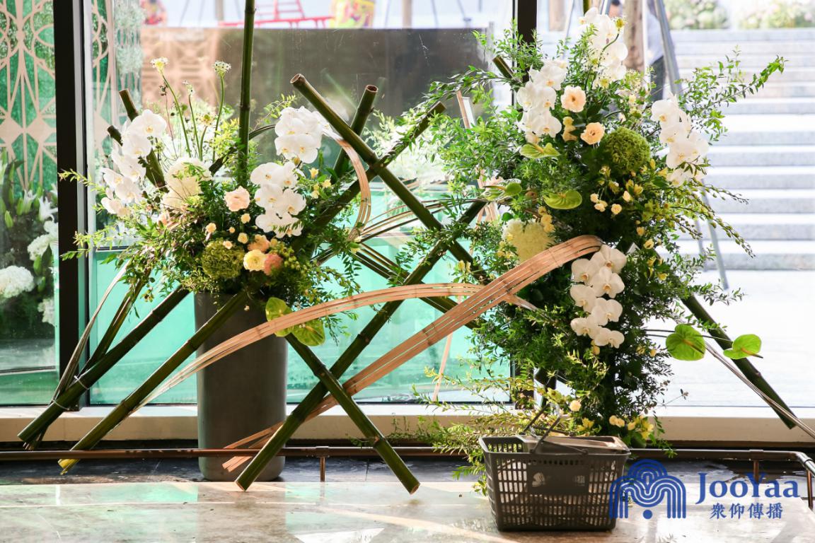众仰人凭借自己的信条:“每一场活动都是现场直播”,不放过每一处细节。在入口处到营销中心的接待厅,一路上繁花盛开。黑色底面的水系衔接,巨型的绿色透光自然花艺装置,随处可见的流水,绿树,鲜花,这与越秀·和樾府的理念自然生长完美契合,也让宾客从踏入营销中心的一刻,便能感受到“自然流露的美”。