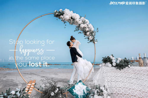 2.充满活力。很多时候并不是新郎新娘长得好看就可以很简单的拍出很优雅很美丽的照片。迷人的婚纱照一定是动态的,照片里弥漫着生命力的张力和幸福的魅力。因此在拍婚纱照的时候,千万不能站桩,而是打开身体四肢,做到表情自然,让整幅婚纱照看起来充满了年轻人的青春与活力。