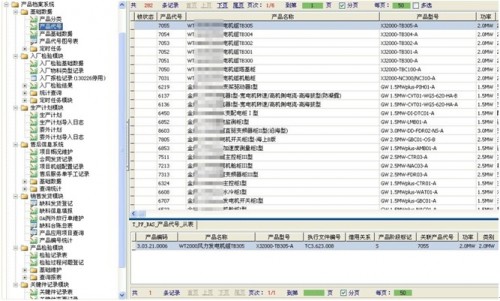 天诚同创的产品基础数据分为四层:功率、类别、产品代号、产品物料编码,其中部分信息已在ERP系统中维护,勤哲系统中可直接导入这部分信息,再手工维护其他信息,从而形成产品档案系统的基础数据。