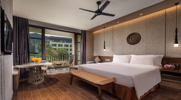 西双版纳融创铂尔曼度假酒店设有412间宽敞的客房和套房,将现代元素与当地传统的傣族风情精妙相融。天然材质、顶棚吊扇及宽大的阳台给人以平静舒适之感。酒店大堂设计集傣族风情与国际风尚于一体,以浓郁的地方风格盛情迎接四海宾朋。