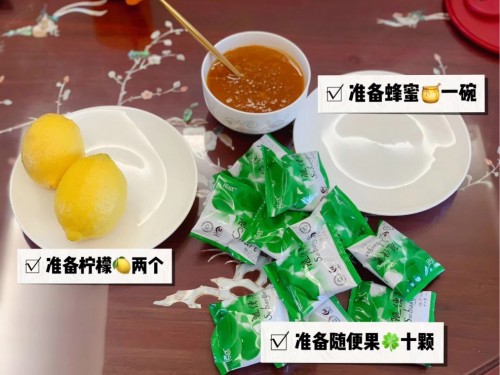 不喜欢高热量饮品也可以选择四季优美随便果蜂蜜柠檬茶,好喝热量又低,自己在家也能做。准备好四季优美随便果、蜂蜜、新鲜柠檬,洗净晾干后切片,分层装碗,直到蜂蜜漫过柠檬片,然后用保鲜膜封好碗口,放入冰箱冷藏。想喝的时候从冰箱里拿出来,用干净的勺子取出一两片柠檬和几粒四季优美随便果,加些温开水泡着喝。