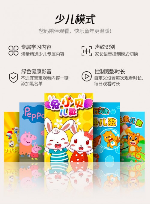 腾讯极光T6让体验更自由,开关机无广告、360°双立体环绕音效,2枚10W喇叭,支持全民K歌功能;多种智能操控方式满足用户的小懒惰,蓝牙遥控、语音操控和遥控器物理按键满足不同用户的使用需求。