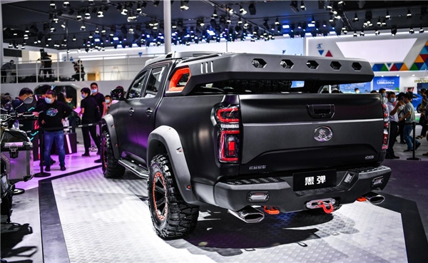 本次车展上,以长城炮越野皮卡改装而来的黑弹震撼亮相,以更加硬朗威猛的造型、黑橙色彩搭配,彰显出舍我其谁的霸气。