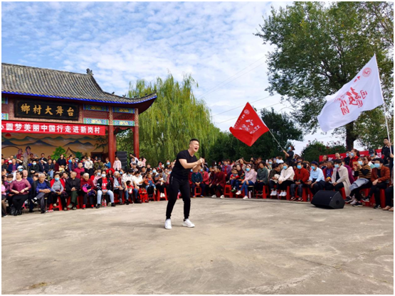 25日上午,“同心圆梦艺术团”的文艺志愿者们走进孝昌县王店镇进行慰问演出,他们手擎“同心圆梦艺术团”和“学雷锋文艺志愿者小分队”的旗帜,来到父老乡亲的身边。中国民族贸易促进会理事会常务主席、著名军旅艺术家张保和老师亲自上阵,表演了以艺战疫歌曲《我们忘不了》,赢得满场掌声;水木年华组合繆杰演唱了《家乡》,深情的演唱点燃了全场的热情;随后,刘刚、大哲、龙飞龙泽、叶梓熙、郑磊分别带来了《闯码头》《怀念青春》《灯火》《少年》《等待》等歌曲,给大家在重阳佳节献上了一场文化大餐。