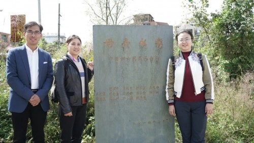 中国妇女发展基金会助理秘书长南静(右)与日出东方公益慈善委员会主席吴典华(左二)、四季沐歌集团品牌总监李文平(左一)考察已建“母亲水窖”项目