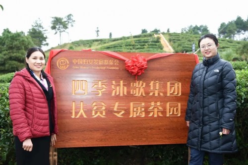 此次贵州丹寨县之行,除了捐赠“母亲水窖”和清洁采暖工程以外,“四季沐歌集团扶贫专属茶园”同步举行了揭牌仪式。四季沐歌重视公益的价值和力量,积极响应中国妇女发展基金会整合丹寨现有茶产业链,妇基会设立的“扶贫茶园”项目,通过捐赠茶园的方式,帮助贫困妇女获得就业机会,助力产业扶贫,实现妇女及其家庭可持续发展。