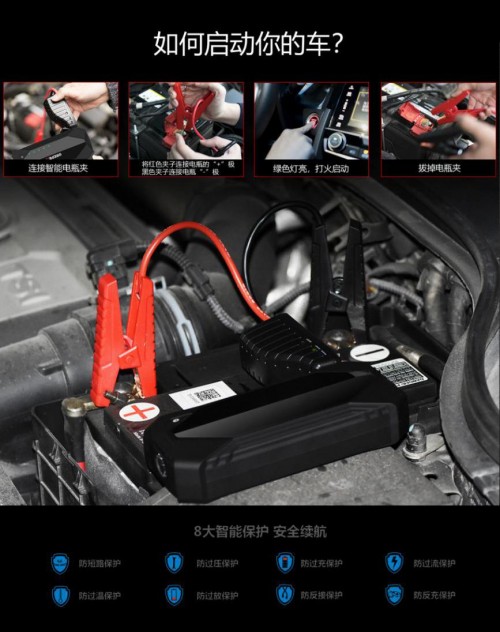 汽车应急启动:启动性能优越,拥有18000mAh大容量,能提供300A-1200A的启动电流,即使是在严寒酷暑(-20℃~60℃)恶劣的环境下,仍可轻松启动。