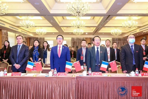 在庄严肃穆的中华人民共和国与法兰西共和国国歌声中,开学典礼正式拉开帷幕。