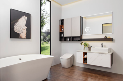 收纳和防潮,向来是反映浴室柜合格与否的重要标准,柏厨的浴室柜大都选择悬挂设计。这样的设计除了在优化使用空间时有着显性的优势外,同时不存在卫生死角,主人家在平时清理的时候相对要简单的多。另外悬挂浴室柜的防潮性能都会更好,再好的柜子都经不起长期水浸,将浴室柜体悬挂起来,与地面割离,可以将水分和湿气扩散,尽量避免湿气日积月累对柜体的侵蚀,从而提升柜体使用年限。