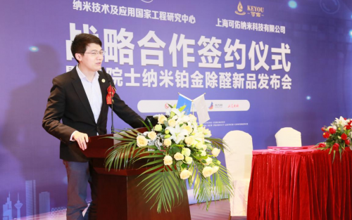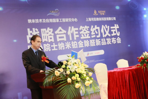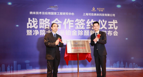 11月9日,纳米技术及应用国家工程研究中心与上海可佑纳米科技有限公司战略合作签约仪式暨净院士纳米铂金除醛新品发布会在纳米技术及应用国家工程研究中心举行。