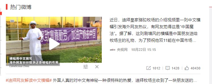 该牧场也因为一位中国朋友送的横幅“发家致富靠勤劳,加油产奶去中国”,被央视网报道,东方杂志,迪拜观察网等多家媒体争相转载。让Camelicious这个驼奶品牌着实火了一把!