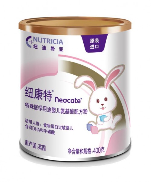 纽康特兔兔罐奶粉是英国原装进口的特殊医学用途婴儿配方粉,另外,它还获得了特殊医学用途配方食品注册证书,拥有001号特医食品注册号,在安全和品质方面非常有保障。和普通配方奶粉相比,纽康特兔兔罐奶粉更适合对食物过敏的婴幼儿,它配方中的蛋白质全部被打成了最小分子,易于消化的同时,不会再次引起过敏,能够为婴幼儿提供发育所必需的能量。为了促进婴幼儿肠胃吸收消化,纽康特兔兔罐奶粉不仅加入了容易消化吸收的中链脂肪酸,还添加了修护肠胃的核苷酸,以及从藻类中提取的促进婴幼儿脑力、视力发育的DHA,通过DHA和AA来促进敏宝智力和视力的发育。因此,它更容易被婴幼儿的身体所吸收,同时还能改善并解决婴幼儿的牛奶过敏问题,是真正的“无敏,有营养 抗敏无忧”的优质奶粉。