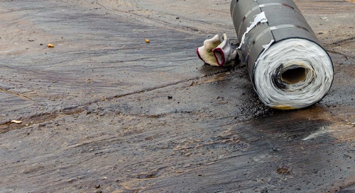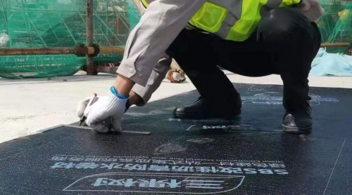(▲防水卷材大面铺设施工中)