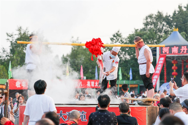 晚6点,来自全国各地的千名游客陆续落座。淅川大厨已经支起直径数米的大锅,为大家提前烧制好了鲜美鱼汤。