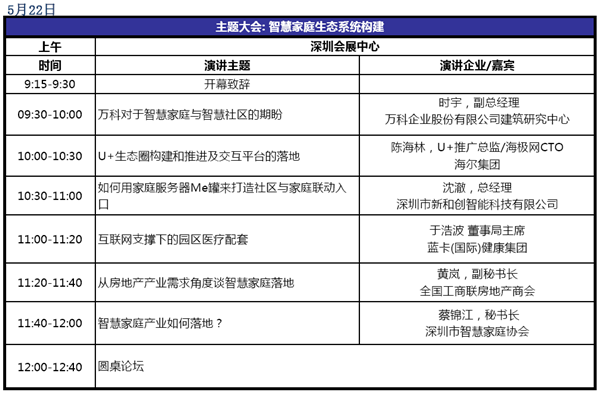 2015年5月22日,万科企业股份有限公司建筑研究中心副总经理时宇将在由深圳市智慧家庭协会和思锐达传媒主办的“中国智慧家庭高峰论坛”上,从房地产商、物业公司的角度,讲述万科对于智慧家庭与智慧社区的期盼,为地产与物业公司转型提供参考思路,同时与智能硬件厂商们共同探讨房地产企业、物业公司与智能硬件终端厂商、智慧家庭云平台企业以及方案商等的合作模式。去年底万科与传统家电厂商海尔星盒达成战略合作,不仅如此,它也已经与很多智能硬件厂商包括小米、BroadLink都展开了合作,未来它与智能硬件厂商之间的合作还将更为深入和彻底。5月22日,我们拭目以待万科对智慧家庭 & 社区O2O的解读!